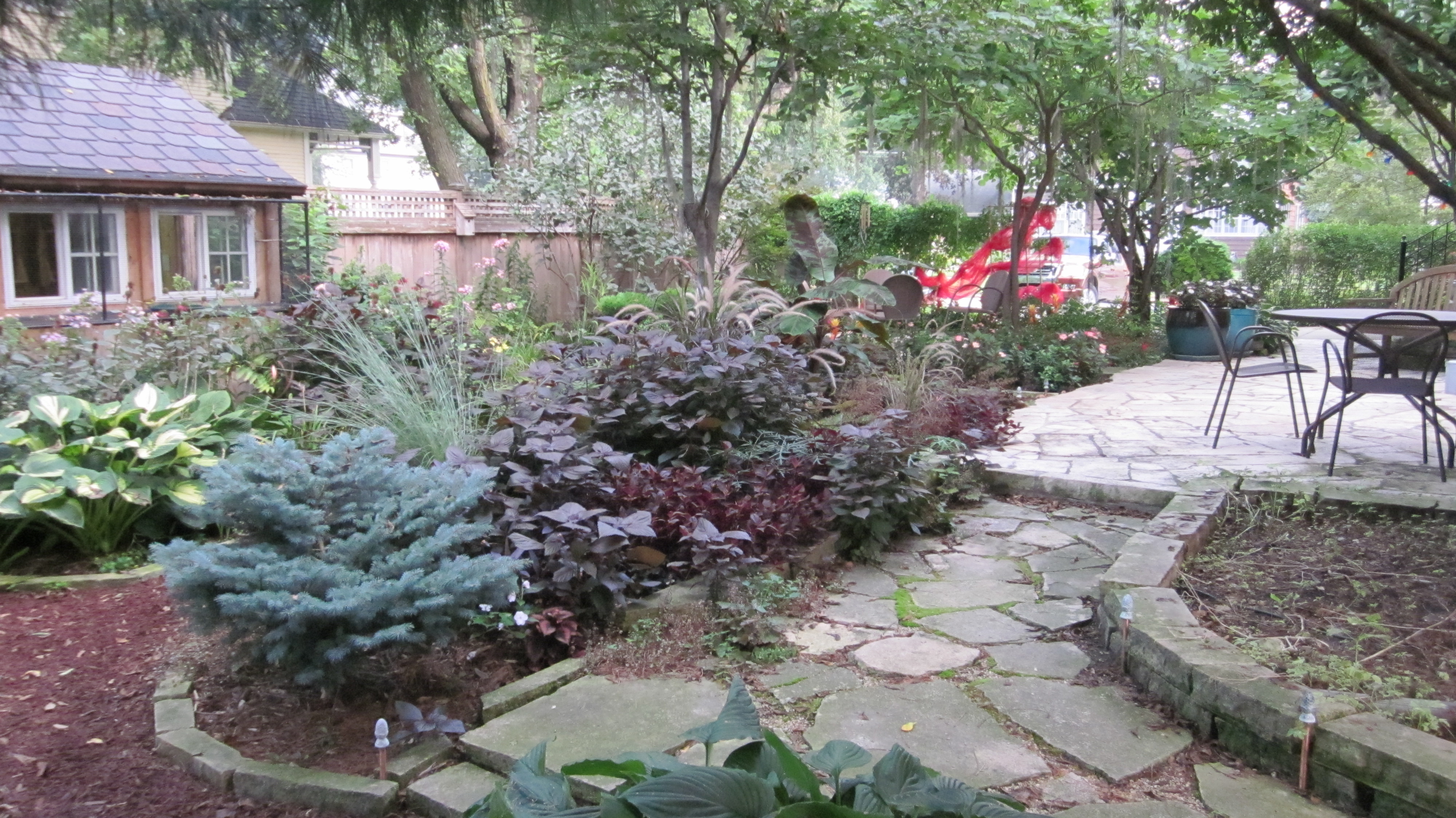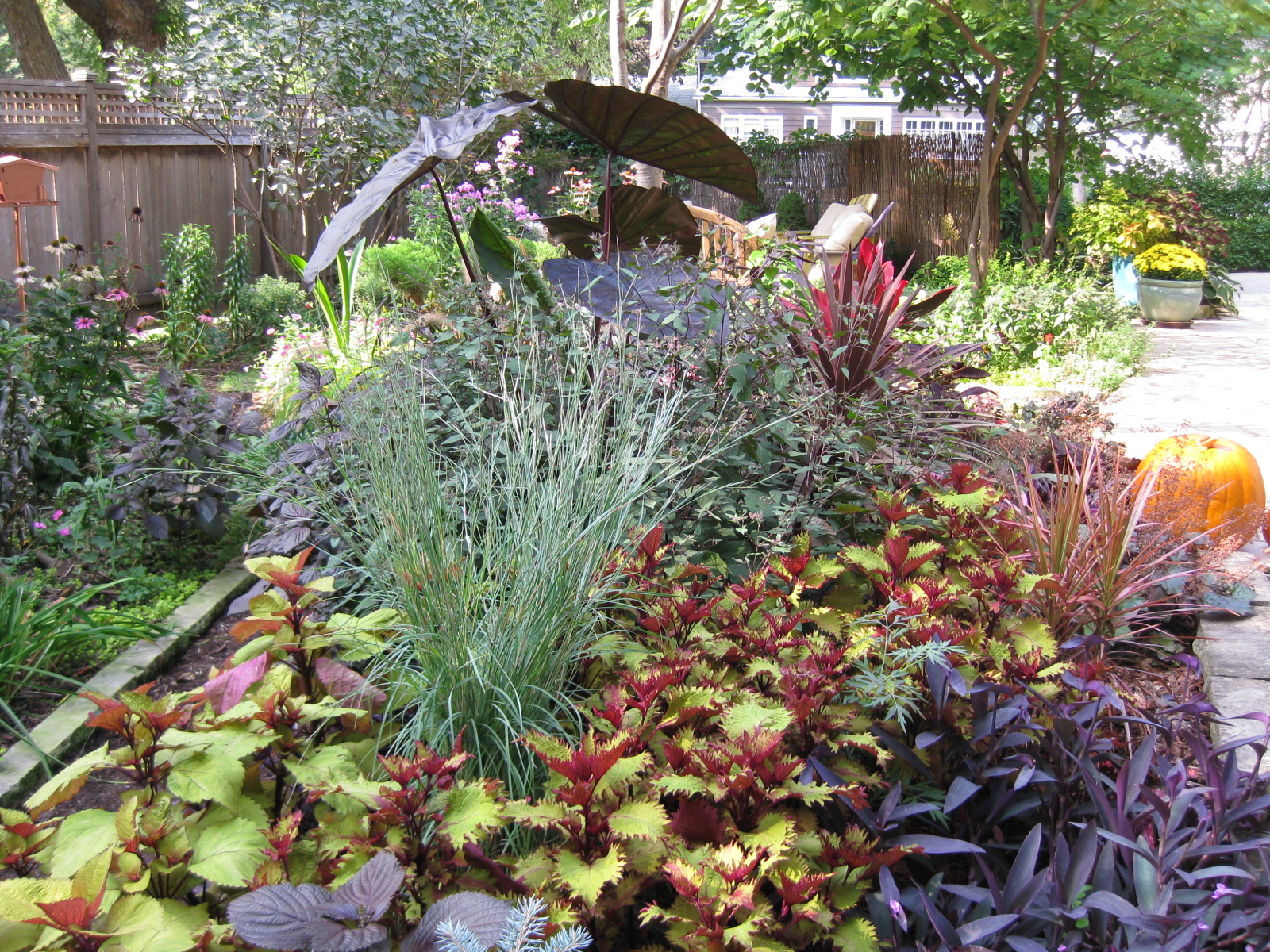A different view of The Purple Garden. The coleus are beautiful, though the purple undersides of the leaves show only when they flutter in a breeze.