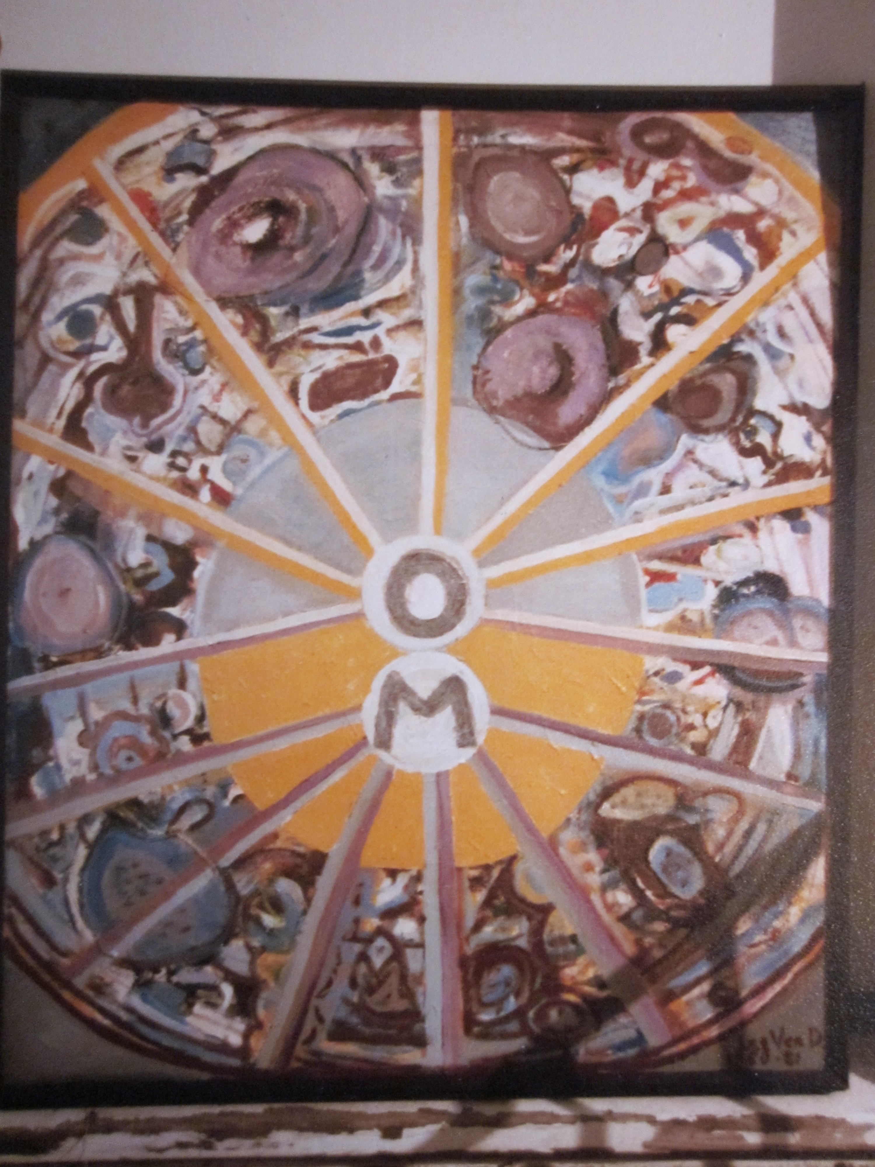 A photo of a painting sent to my father, John Coster, with the following note on back: “This is entitled “Our Macule–A Meditation Piece” (priced at $600) So who’se interested Best regards Lee”