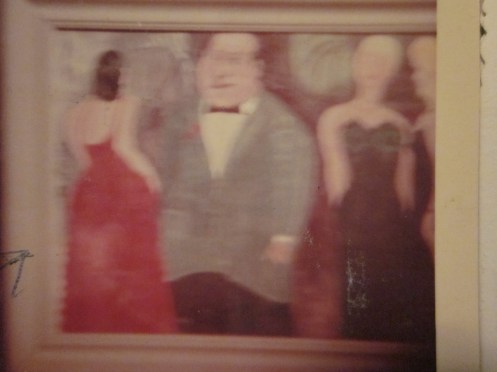 This is an unfocused photo of a painting by Lee Ver Duft, entitled “Maitre’ D”, original oil 20×24, which was stolen on August 16th, 1965. Current Where-abouts is unknown.