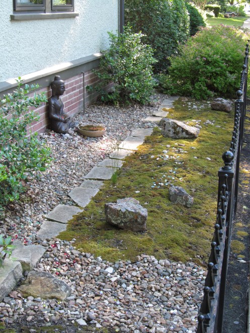 As a final touch, one can add stones, boulders, statuary, and an occasional tuft of grass or single flowering plant to the patch of Moss for artistic interest. It’s a very simple but beautiful look that causes those strolling by to stop and ponder for a moment – a bit of Zen before walking into the daily insanity of regular life.