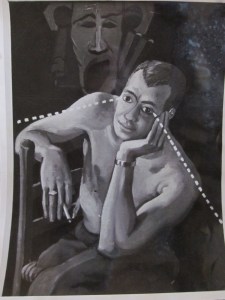 “Maitre’d”. A 20×24 Lee Ver Duft oil that was stolen on August 16, 1965, and never recovered. This photo is badly out of focus, but it’s a very interesting work.