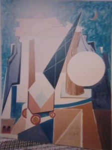 Lee’s first showing of his paintings and sculptures was in 1941 at the Des Moines Art Gallery; his second “One Man Exhibit” was there in 1946; the Grand Galleries in Des Moines served as the venue for his shows in 1951, 1956, 1961, and 1966. His final show, entitled “The 7th One-Man Exhibit Mini-Retrospective: Mixed Media painting 1946-1975 by Lee Ver Duft” was February 10th-24th, 1975 at the Younkers Gallery in Des Moines. Based upon Lee’s own written musings, it is clear that he “gave away” a good many paintings during this 30-year period, but he also sold a fair number. His work is described in the Des Moines Register as “avant-garde”, and the Des Moines Register Art Critic George Shane wrote of Lee’s 1967 show: “Over the many years I have come to know Lee Ver Duft’s artwork, his paintings have been in the vanguard of his contemporaries.” (The statement doesn’t really say much; it seems to me it was meant simply to be “Iowa nice.”)